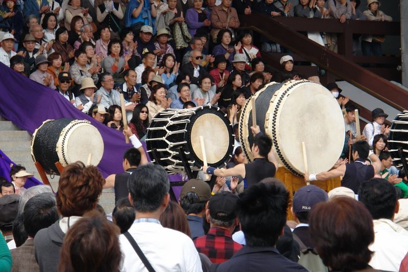 Tak sobie to czytam i zauważyłam, że brakuje mi jednego dnia, czyli 15 kwietnia. Wtedy byliśmy w Naricie na Festiwalu Bębna. Jeszcze pogoda była piękna i choć trochę zaspaliśmy warto było tam pojechać, bo jak bębny zagrały, to było coś. W pochodzie uczestniczyły nawet 5 – latki z malutkimi bębnami i cale mnóstwo seniorów, pewnie z jakiś Kółek Gospodyń Miejskich. Dobrze, że nie pojechaliśmy do Kamarury na Festiwal Łuczników, bo podobno tam nie było nic widać, tyle było ludzi.